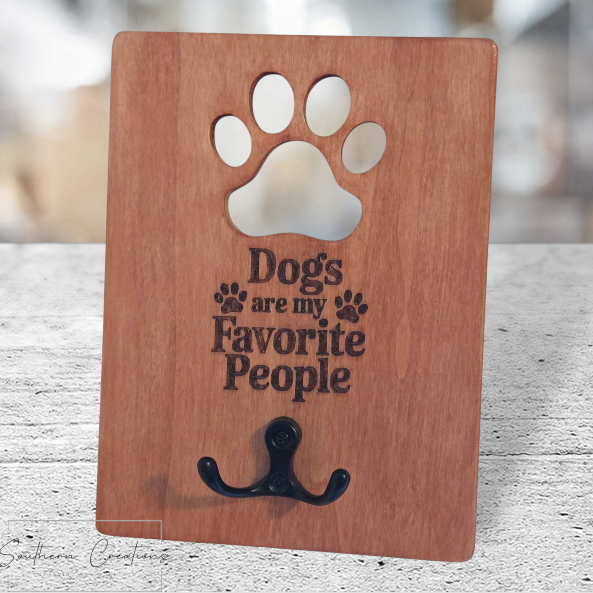 Crafted with care by Southern Creations, the "Dogs are my Favorite People" Leash Holder is a charming addition to any pet owner's home. Made from durable wood, this holder provides a convenient spot to hang your dog's leash, keeping it neatly organized and within easy reach. The leash holder features a warm, inviting design that celebrates the special bond between pets and their owners. It's a practical accessory that adds a touch of personality to your pet care routine, making it a must-have for dog lovers seeking a blend of function and style.